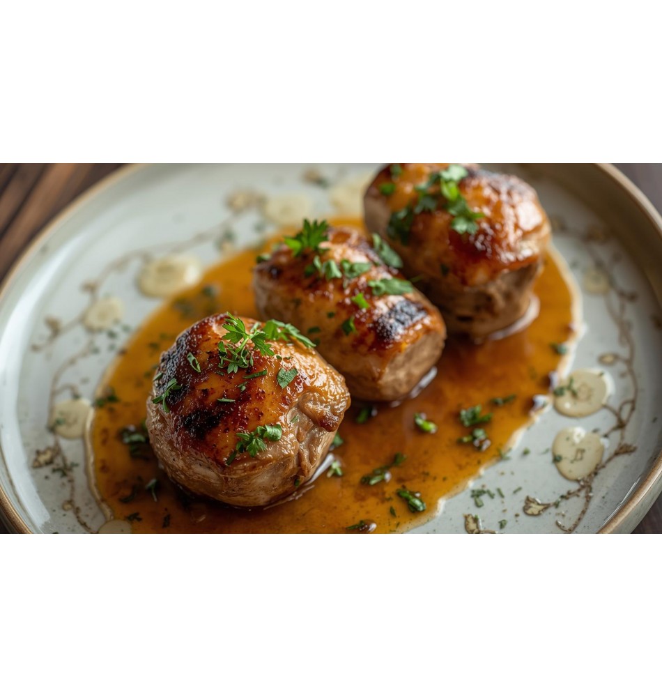 Porc, champignons, herbes, 175g. chaque, 19,40€/kg